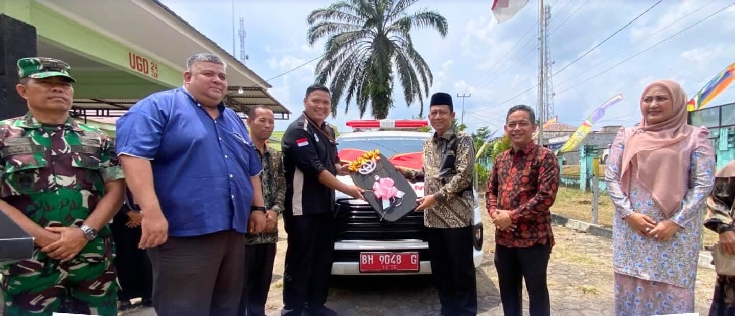 Penyerahan ambulans dilakukan langsung oleh Bupati Muaro Jambi, Bambang Bayu Suseno, didampingi Ketua TP PKK Ririn Novianti dan Kepala Dinas Kesehatan dr Aang Hambali.