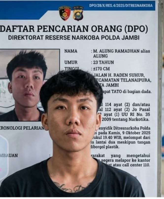 Karena hingga kini keberadaannya belum ditemukan, pihak Kepolisian Jambi resmi mengeluarkan status Daftar Pencarian Orang (DPO) dengan nomor: DPO/28/X/RES.4/2025/DITRESNARKOBA. Alung kini menjadi target utama pengejaran aparat di seluruh wilayah Jambi dan sekitarnya.