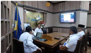 Bupati Muaro Jambi Bambang Bayu Suseno bersama Wakil Bupati Junaidi H. Mahir dan Sekda Budhi Hartono mengikuti peluncuran Indikator Pencegahan Korupsi Daerah (IPKD) secara virtual yang diselenggarakan oleh KPK.